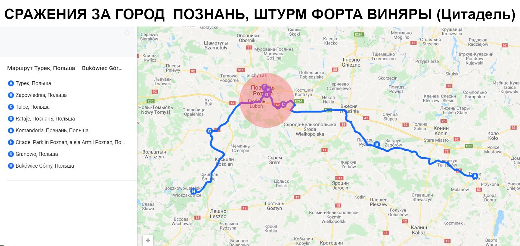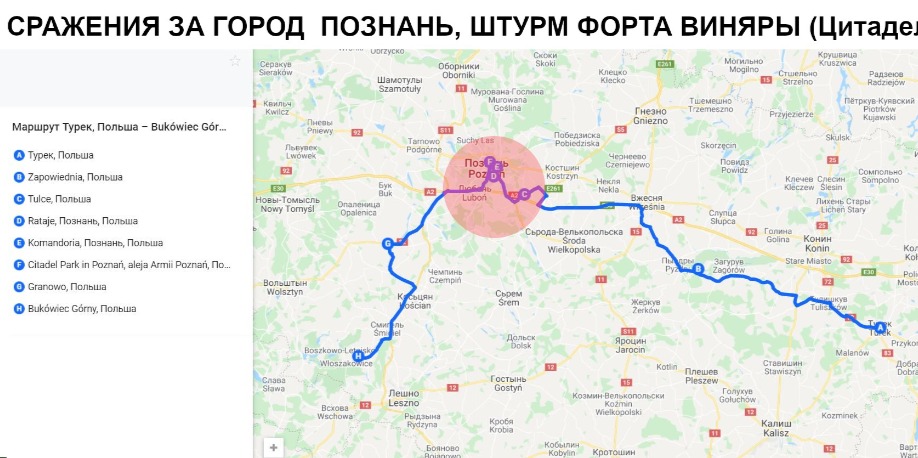 Масштабные сражения: Форсирование реки Висла, бои на западном берегу реки (03.08.1944- ). Освобождение города Познань (26.01.1945- 23.02.1945). Сражения за Познанскую крепость, Цитадель. (02.02.1945- 23.02.1945). Из "Журналов боевых действий 125 пап" 1942- 1945г.