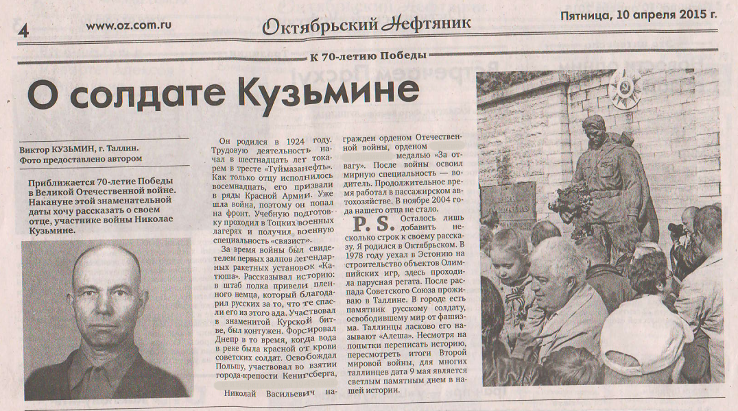 Статья из газеты "Октябрьский нефтяник" от 10.04.2015.